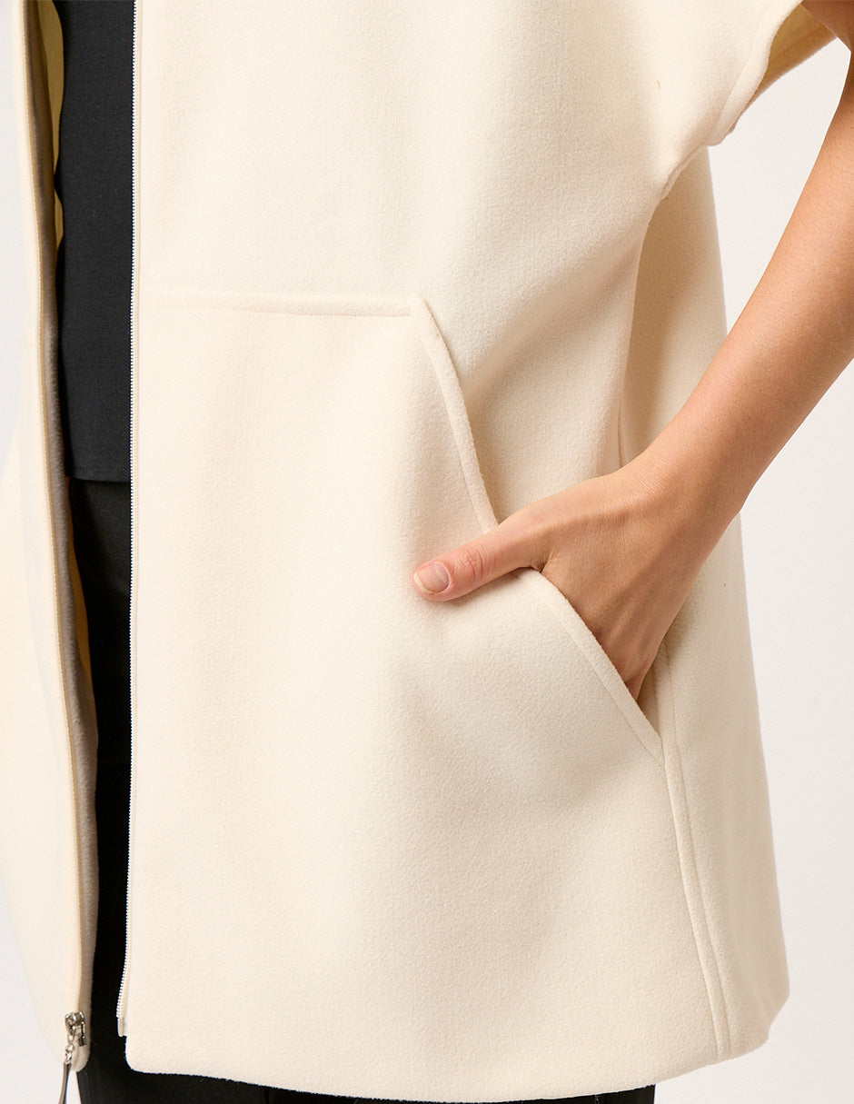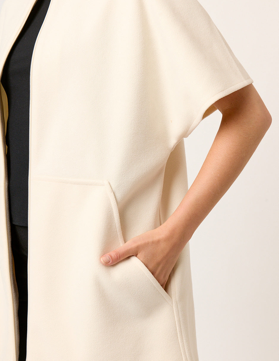 ABRIGO SEMI LARGO MINIMALISTA DE PAÑO COLOR IVORY CON BOLSILLOS TIPO CANGURO RIVOLI