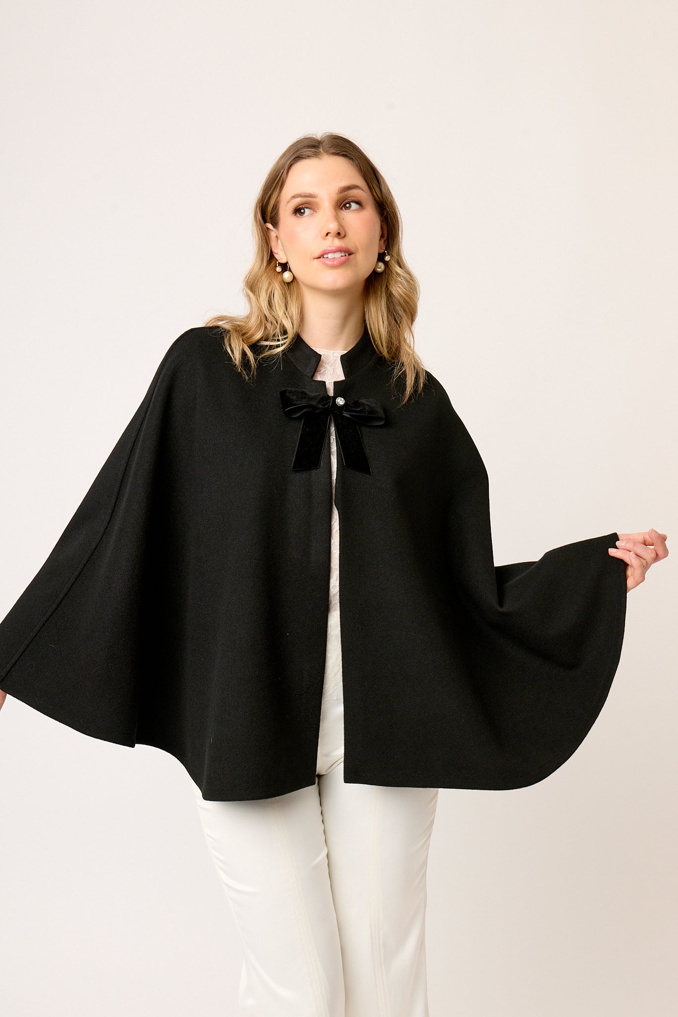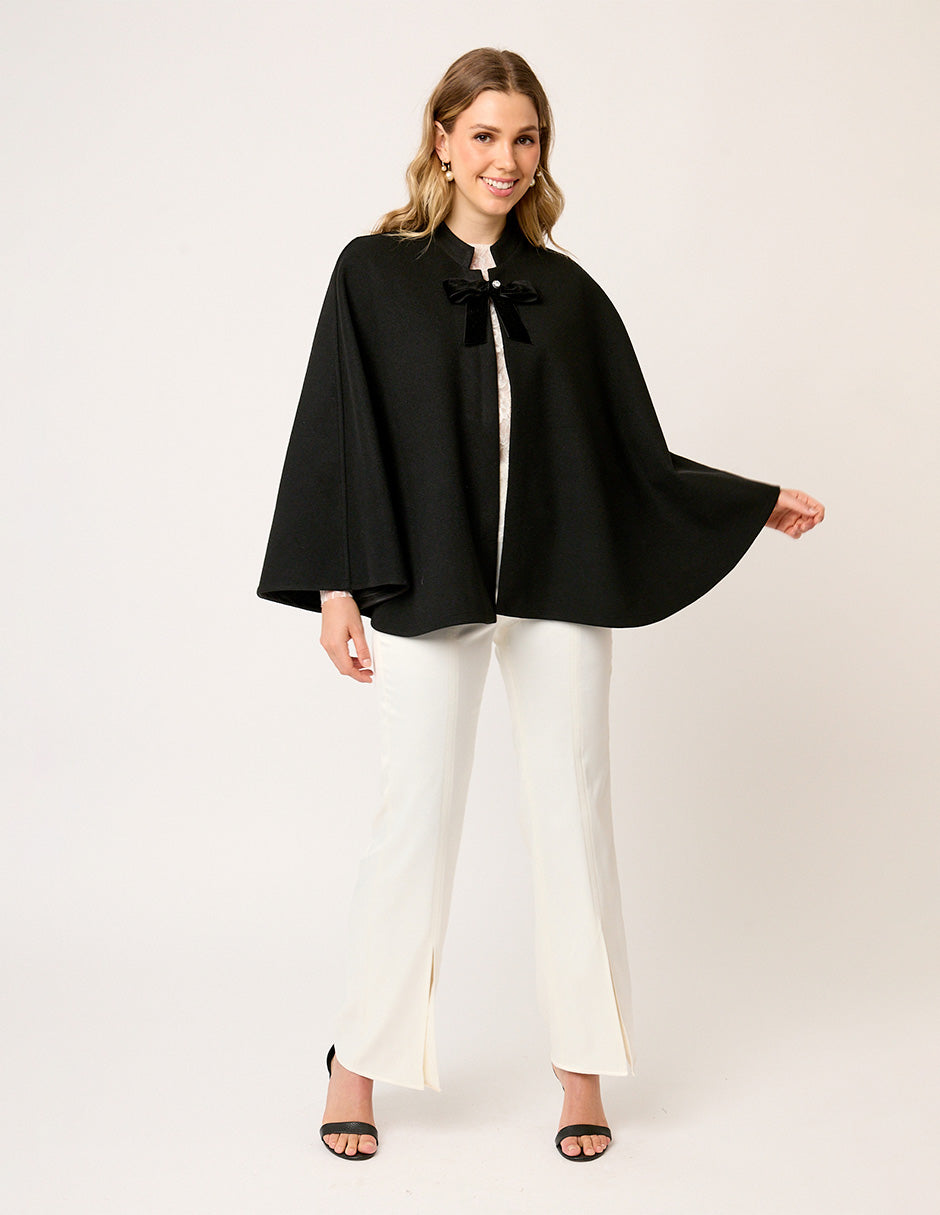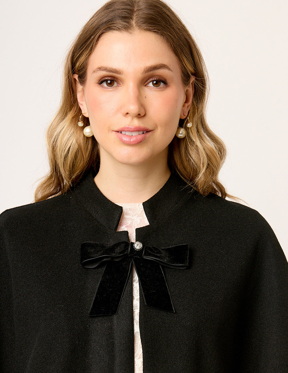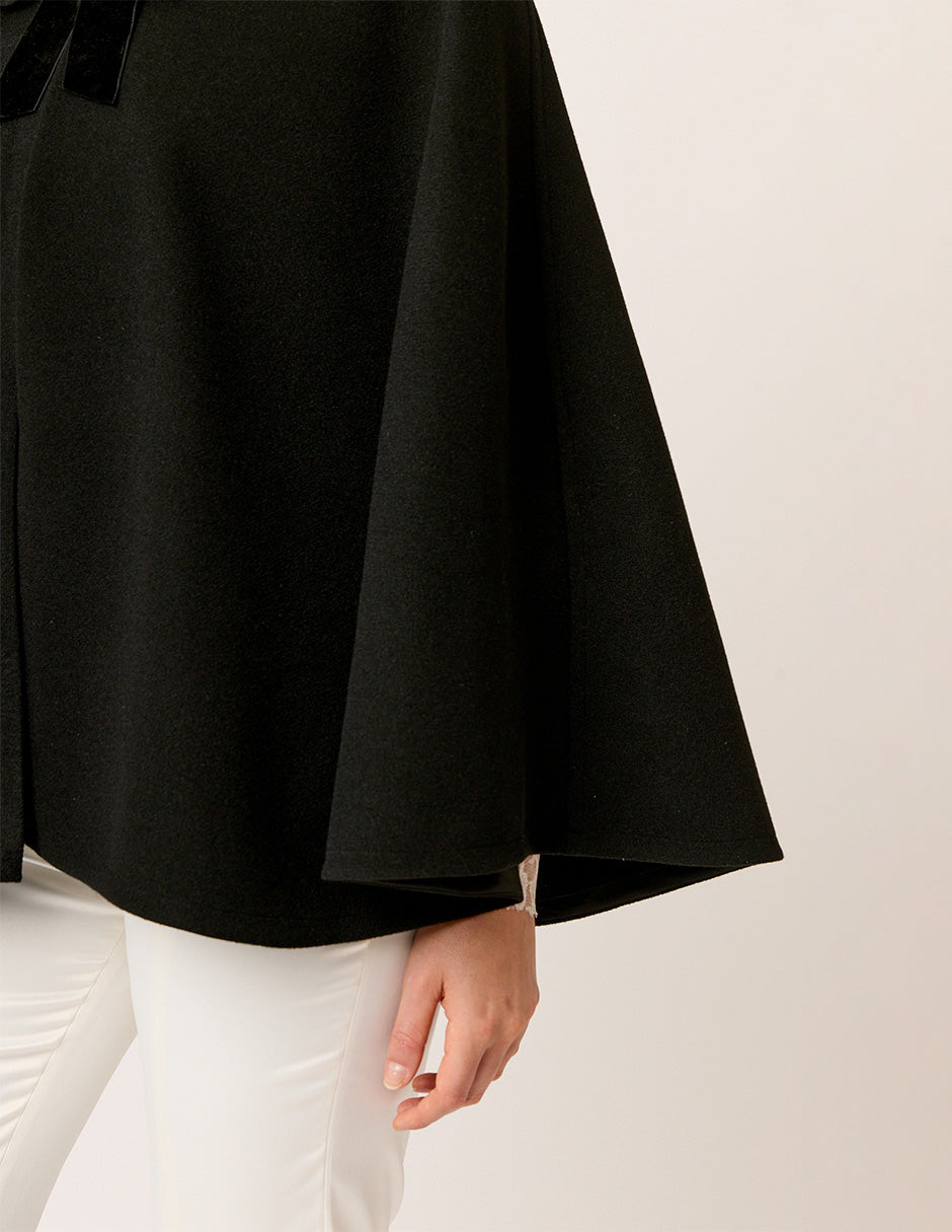 CAPA NEGRA DE PAÑO SEMI CIRCULAR CON MOÑO DE TERCIOPELO EUGENIA
