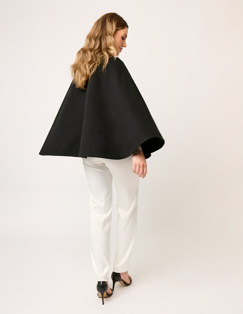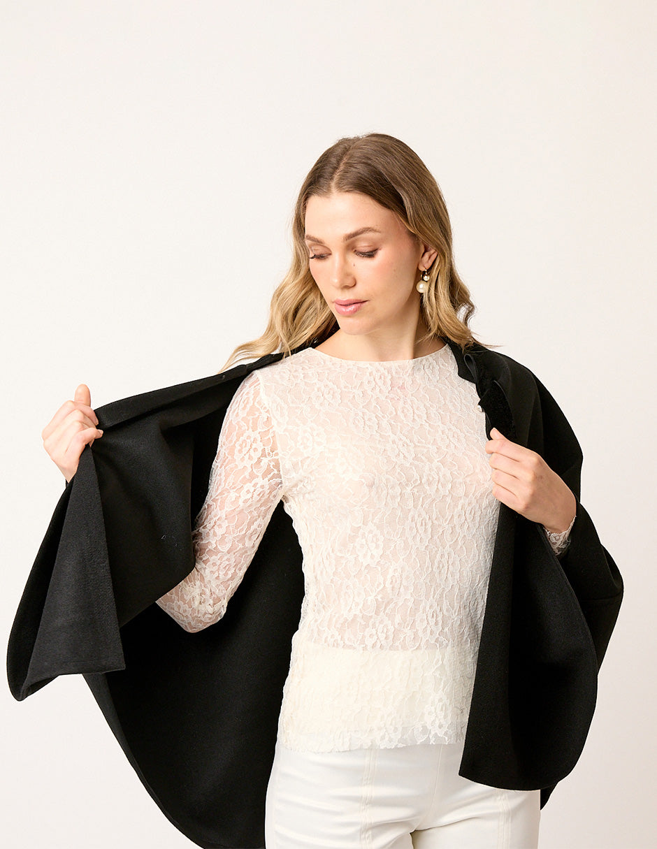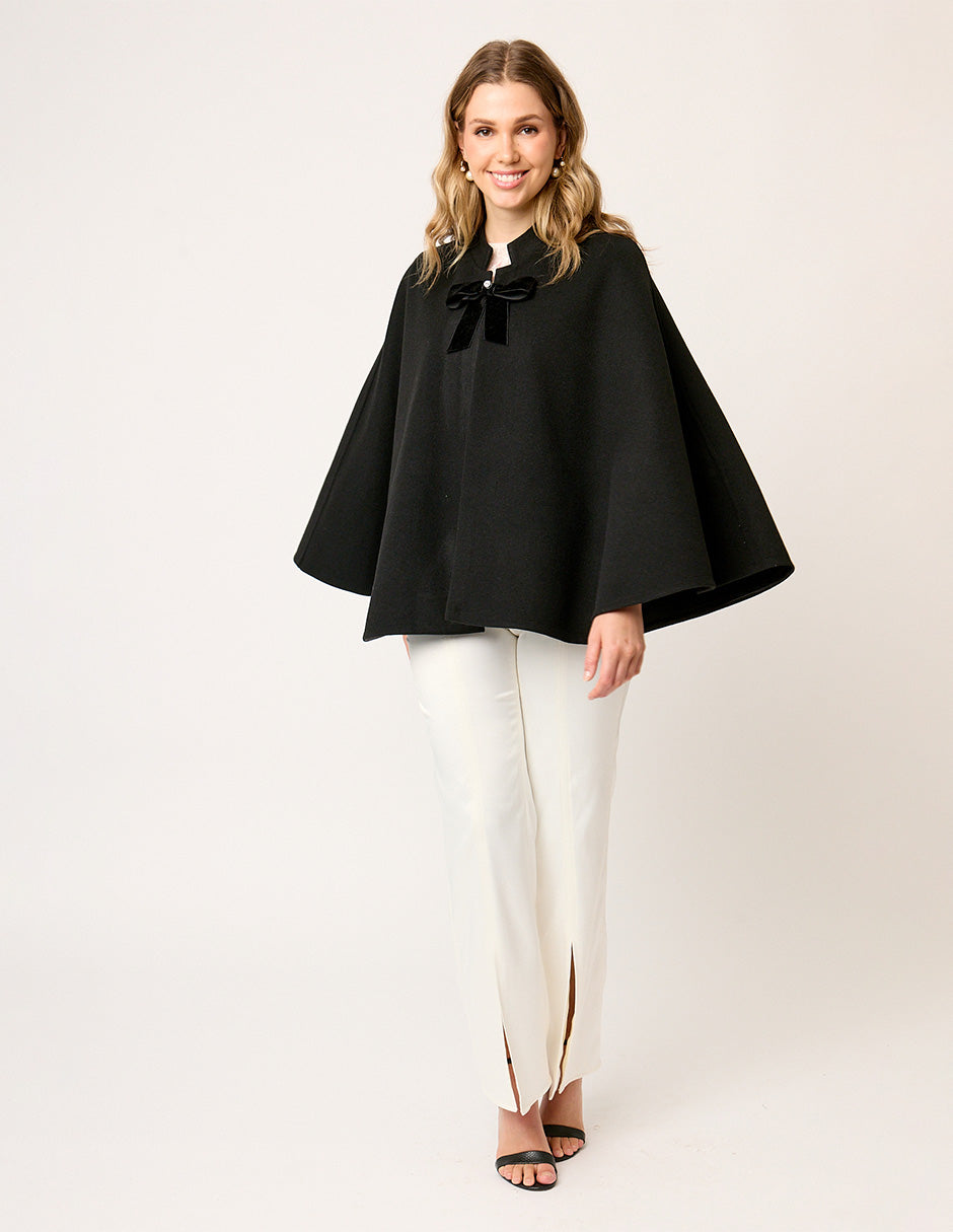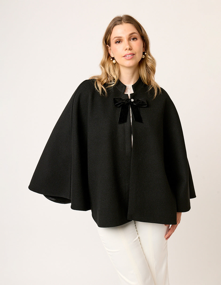CAPA NEGRA DE PAÑO SEMI CIRCULAR CON MOÑO DE TERCIOPELO EUGENIA