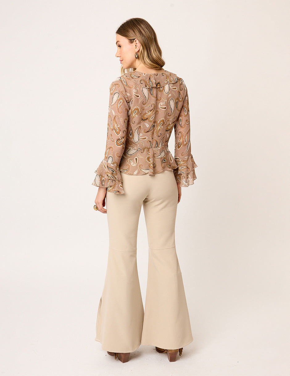 PANTALÓN DE VESTIR STRETCH COLOR ARENA ACAMPANADO CON ABERTURAS LATERALES MONTMARTRE